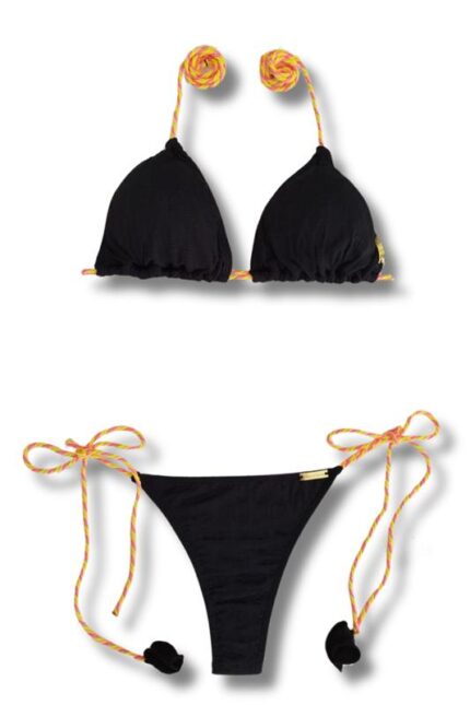 Top biquíni tecido maresia cortininha de correr com bojo removível, cordão de São Francisco, de amarrar nas costas e no pescoço.