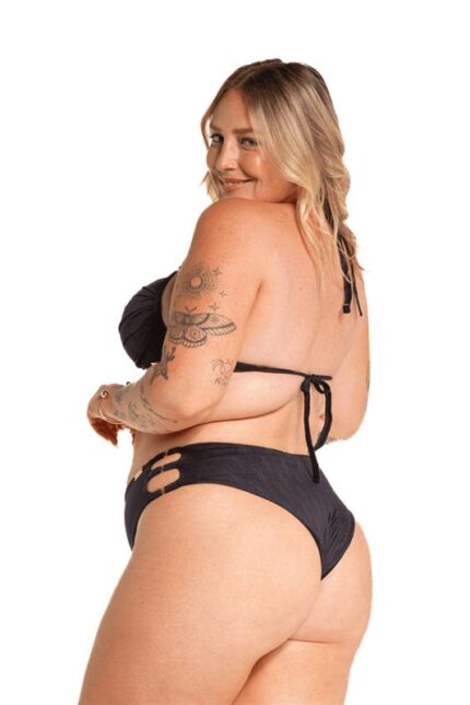 Top biquíni tecido maresia com bojo forrado, detalhe transpassado no meio, alças com detalhe de argolas, de amarrar nas costas e com varias opções de amarração das alças (pescoço, nos ombros, transpassadas…). Use a criatividade!