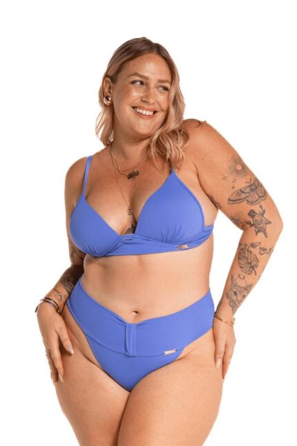 Top biquíni tecido colmeia com bojo forrado e detalhe vazado na frente, alças reguláveis, de amarrar nas costas.