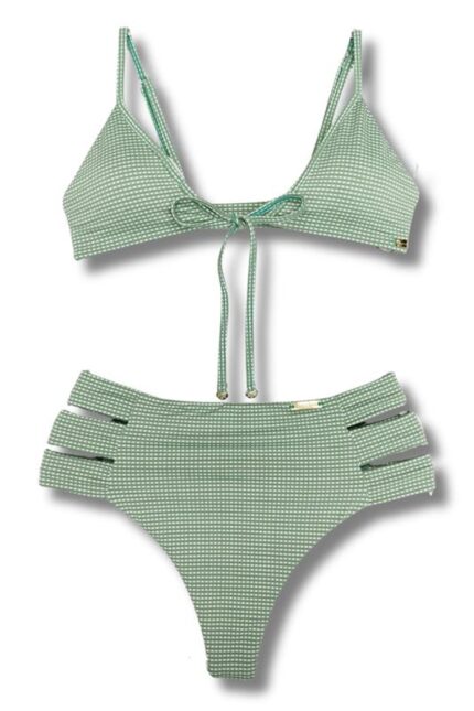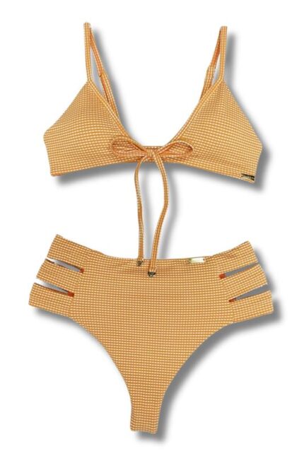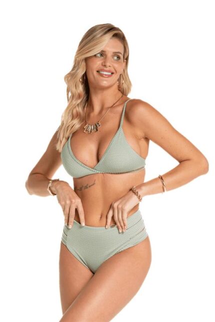 Top biquíni tecido bally com bojo removível, costas inteira e aberto na frente com duas formas de amarração e alças reguláveis.