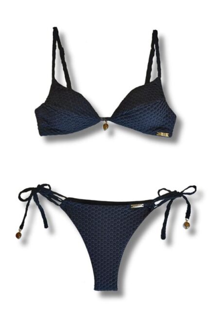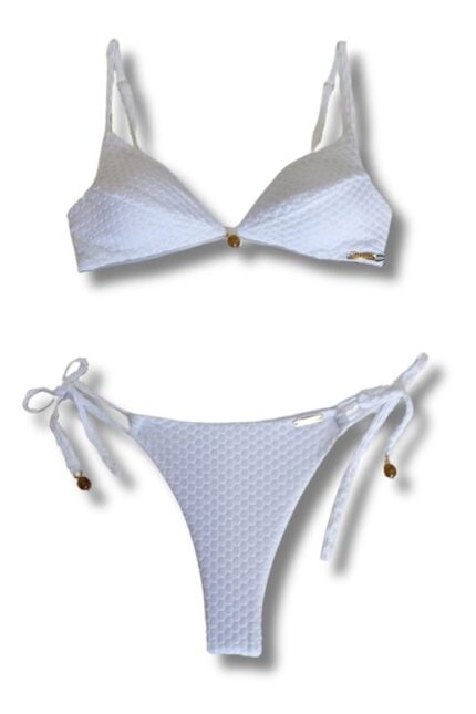 Calcinha biquíni tecido bublle fio com costura embutida, de amarrar nas laterais.