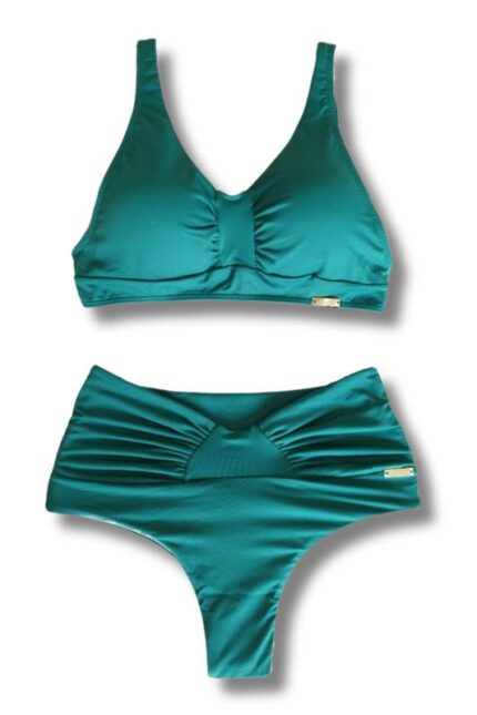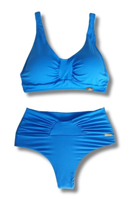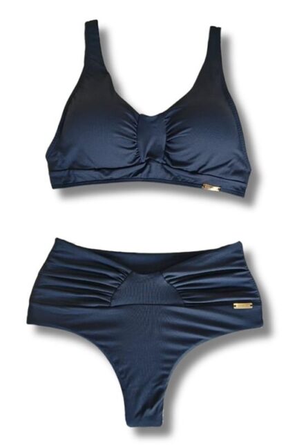 Conjunto Top Franzido Calcinha Fio Cós Alto