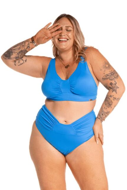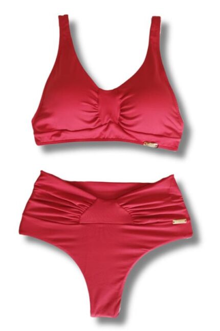 Calcinha biquíni fio cós alto com costura embutida e detalhe franzido na frente.
