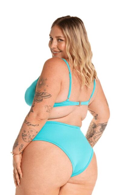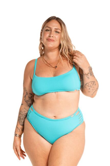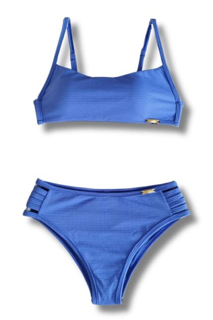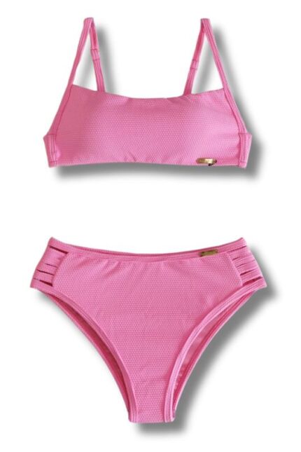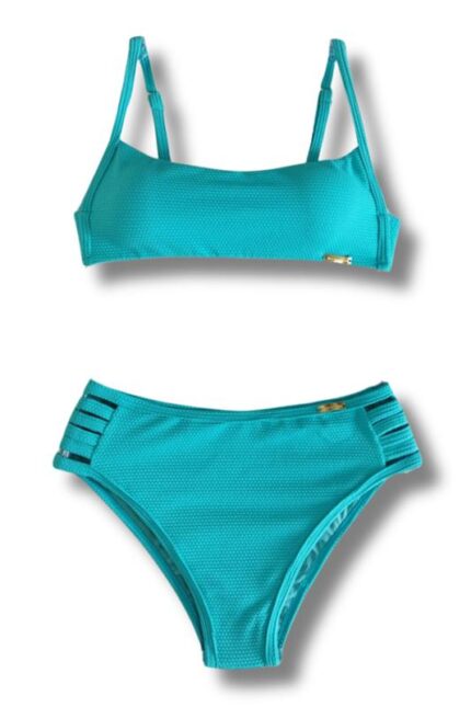Top biquíni tecido colmeia inteiro com bojo, alças reguláveis, costas com fechamento de clique.