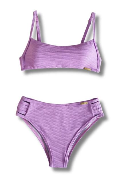 Calcinha biquíni tecido colmeia tanga com detalhe de tiras nas laterais.