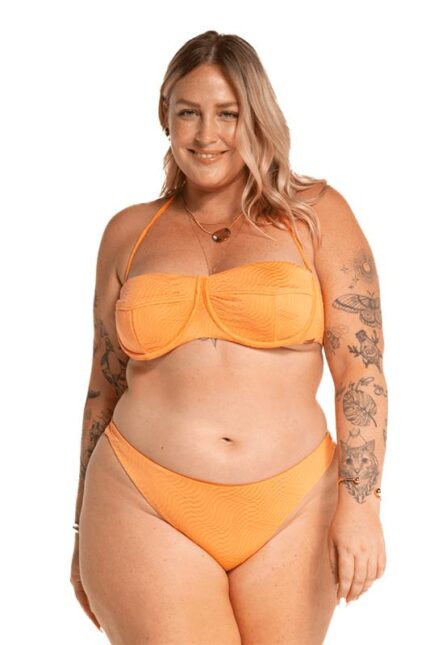 Top biquíni tecido maresia tomara que caia com alças e bojo removíveis, detalhe de recortes no bojo, fechamento de clique nas costas.