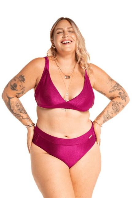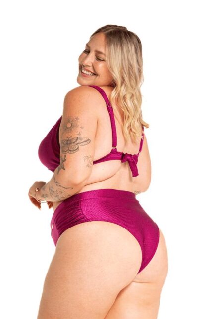 Calcinha biquíni tecido still tanga cós alto com detalhe franzido nas laterais.