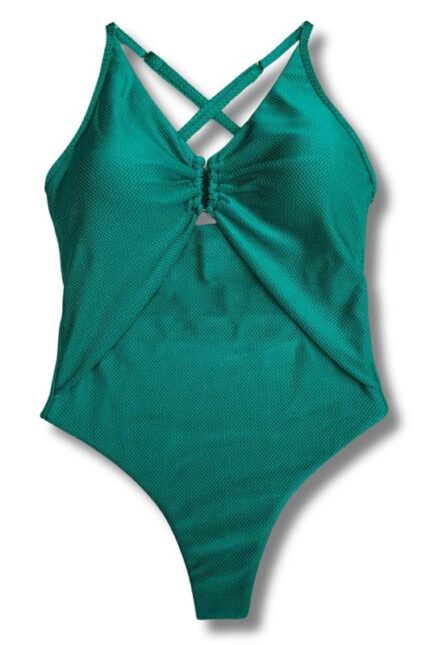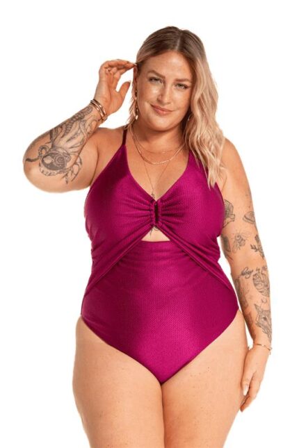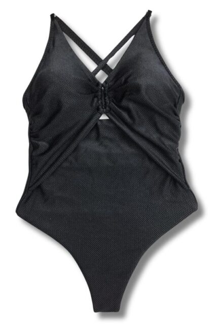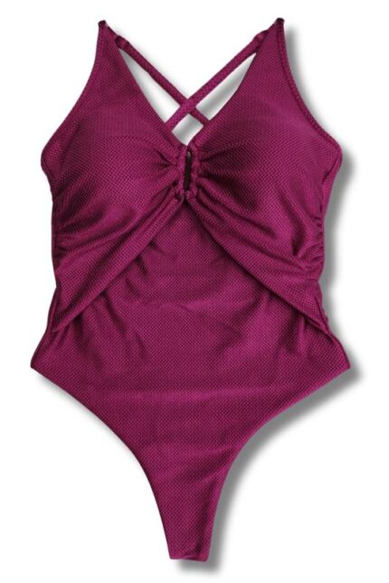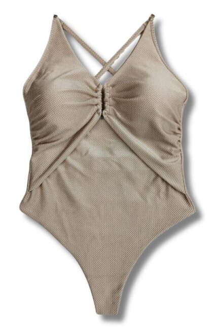 Maiô tecido still com bojo, acessório meio, tecido transpassado frente solto, alças cruzadas de regular, parte debaixo meio fio mais alto.